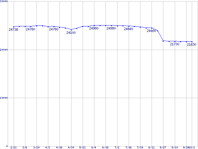 | [↑前グラフ]: | Socket 478 (FC-PGA2,FSB 800MHz,L2 512KB,Hyper-Threading,Northwood)の最安値推移 |