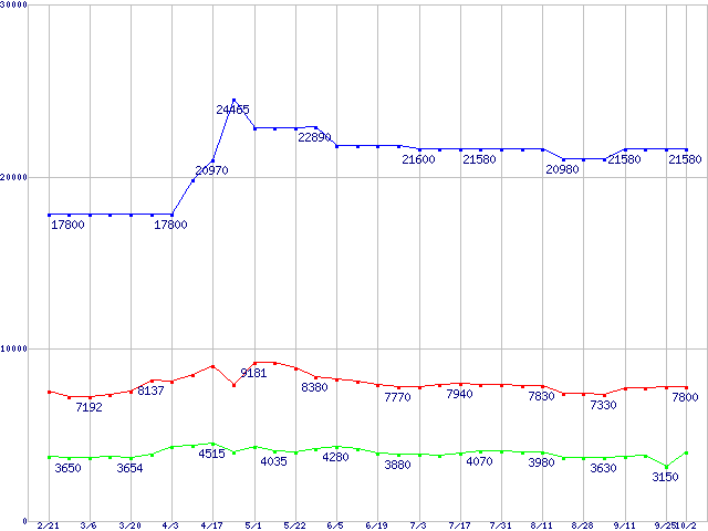 | ※製品名をクリックすると個別のグラフを表示します ※点線部は販売店が確認できなかった、または調査データがないことを示します | |