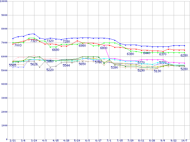 | [↓次グラフ]: | HDD 80GB~100GB未満の最安値推移 |