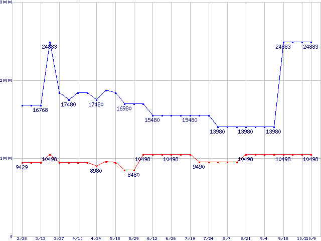 | [↑前グラフ]: | PC4000(DDR500) DDR SDRAM DIMMの最安値推移 |