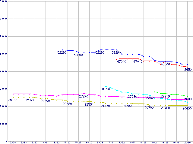 | ※製品名をクリックすると個別のグラフを表示します ※点線部は販売店が確認できなかった、または調査データがないことを示します | |