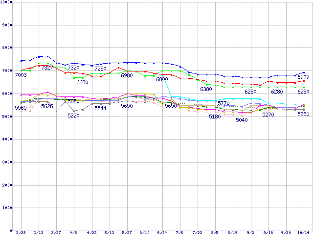 | [↑前グラフ]: | HDD 20GB~30GB未満の最安値推移 |