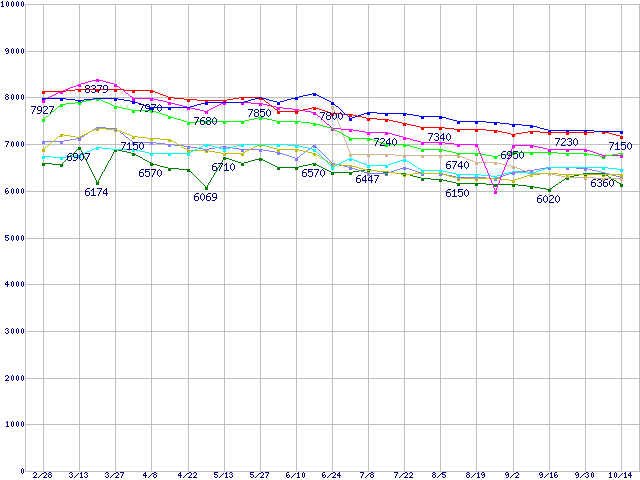 | [↑前グラフ]: | HDD 30GB~80GB未満の最安値推移 |