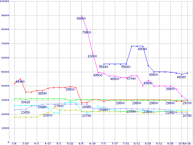 | ※製品名をクリックすると個別のグラフを表示します ※点線部は販売店が確認できなかった、または調査データがないことを示します | |