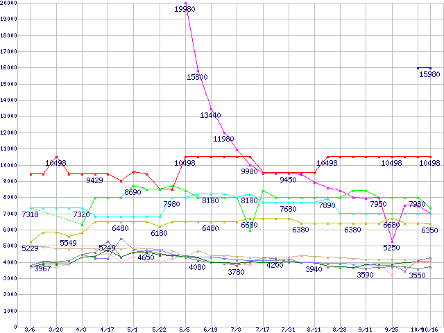 | [↑前グラフ]: | 512MBモジュールの最安値推移 |