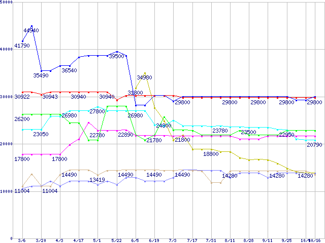 | ※製品名をクリックすると個別のグラフを表示します ※点線部は販売店が確認できなかった、または調査データがないことを示します | |