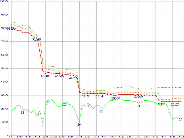 | ※このグラフは過去のデータも税率5%相当に調整した税込み相当額のグラフです。 税率変更や、総額表示方式導入(2004年4月)の影響は除いています。 | |||||||||||||||