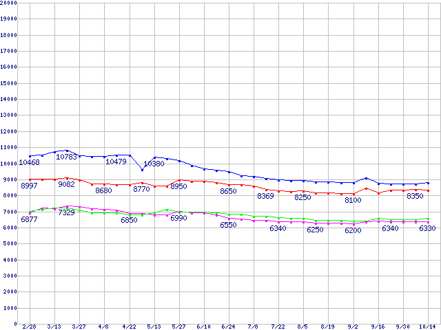 | [↑前グラフ]: | DiamondMax Plus 9 (7200rpm,8MB,UltraATA/133,FDB)の最安値推移 |