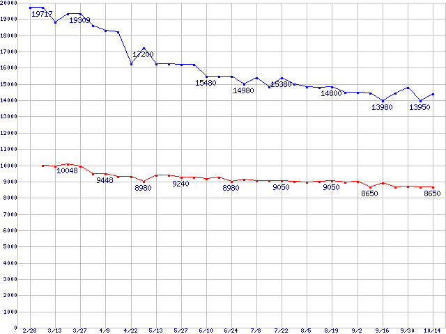 | [↑前グラフ]: | WD Caviar(Special Edition) (7200rpm,UltraATA/100,8MB)の最安値推移 |