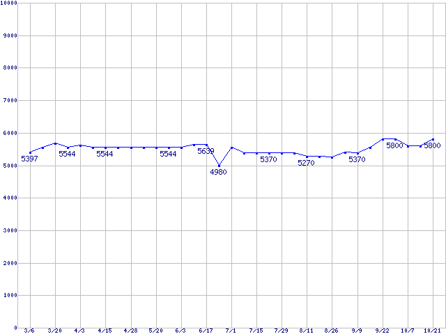| [↓次グラフ]: | HDD 30GB~80GB未満の最安値推移 |