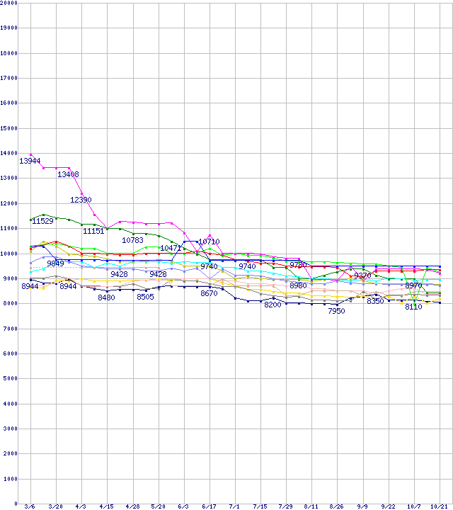 | [↑前グラフ]: | HDD 80GB~100GB未満の最安値推移 |