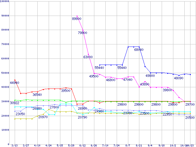 | ※製品名をクリックすると個別のグラフを表示します ※点線部は販売店が確認できなかった、または調査データがないことを示します | |