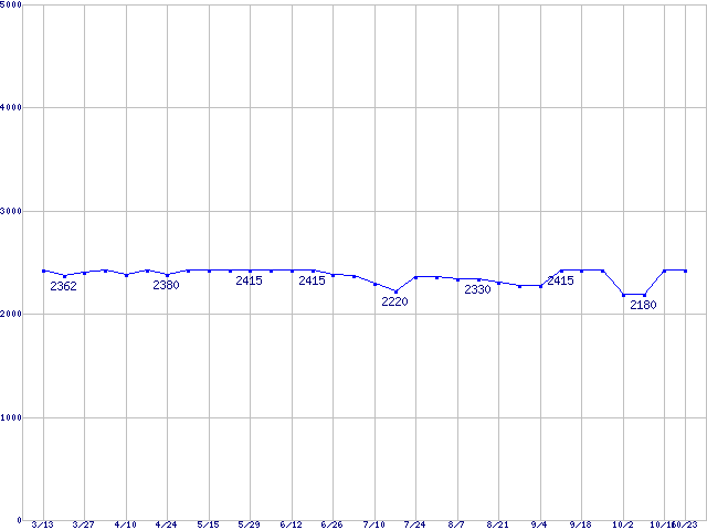 | [↓次グラフ]: | メモリ主要製品(最安値5千円未満)の最安値推移 |