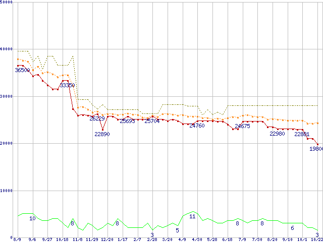| Opteron 240(1.4GHz) リテールパッケージの価格推移 |