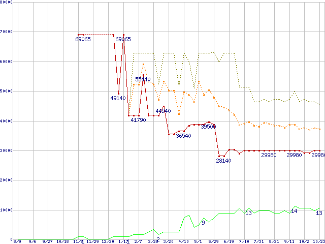 | PC3200 DDR SDRAM 1GB(CL3) ECC Registeredの価格推移 |