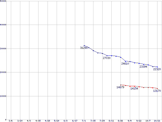 | [↑前グラフ]: | MaXLine IIII (7200rpm,16MB,SerialATA II,FDB)の最安値推移 |