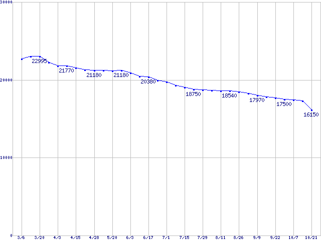 | [↑前グラフ]: | DiamondMax 10 (7200rpm,SerialATA II,FDB)の最安値推移 |