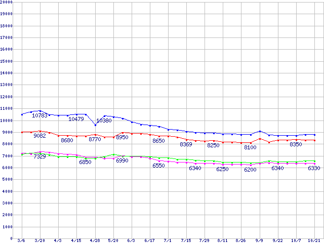 | [↑前グラフ]: | DiamondMax Plus 9 (7200rpm,8MB,UltraATA/133,FDB)の最安値推移 |