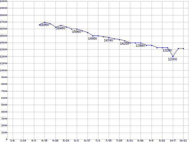 | [↑前グラフ]: | Barracuda 7200.7 SATA II (7200rpm,SerialATA II,8MB,80GB/Platter,FDB)の最安値推移 |