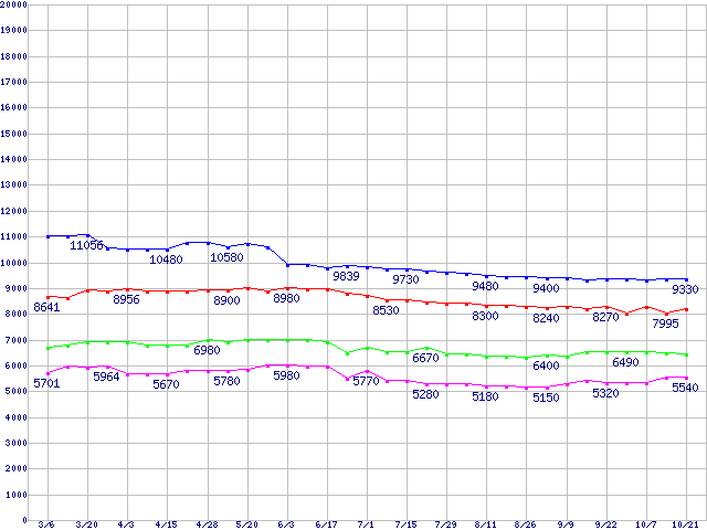 | [↑前グラフ]: | Barracuda 7200.7 Plus (7200rpm,UltraATA/100,8MB,80GB/Platter,FDB)の最安値推移 |