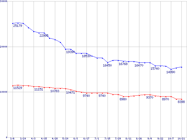 | [↑前グラフ]: | WD Raptor (10000rpm,SerialATA/150,8MB)の最安値推移 |