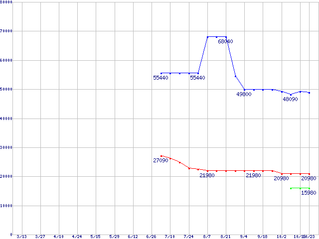| ※製品名をクリックすると個別のグラフを表示します ※点線部は販売店が確認できなかった、または調査データがないことを示します | |