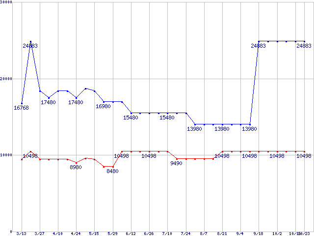 | [↑前グラフ]: | PC4000(DDR500) DDR SDRAM DIMMの最安値推移 |