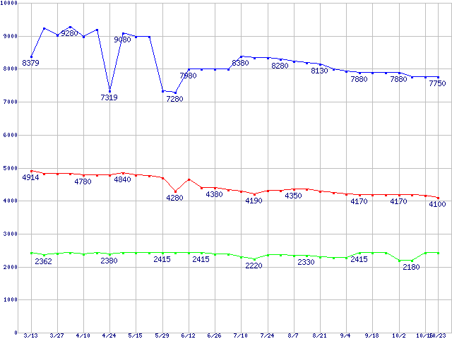 | ※製品名をクリックすると個別のグラフを表示します ※点線部は販売店が確認できなかった、または調査データがないことを示します | |