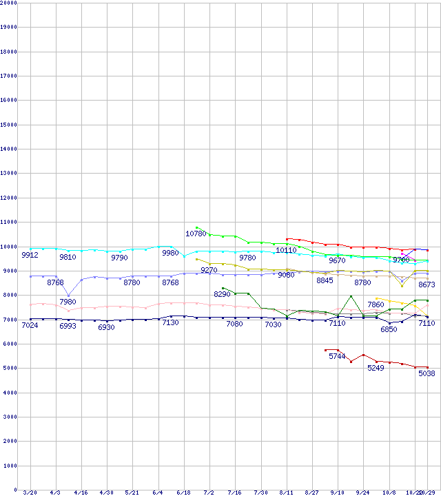 | [↓次グラフ]: | CPU主要製品(最安値1万円~2万円未満)の最安値推移 |