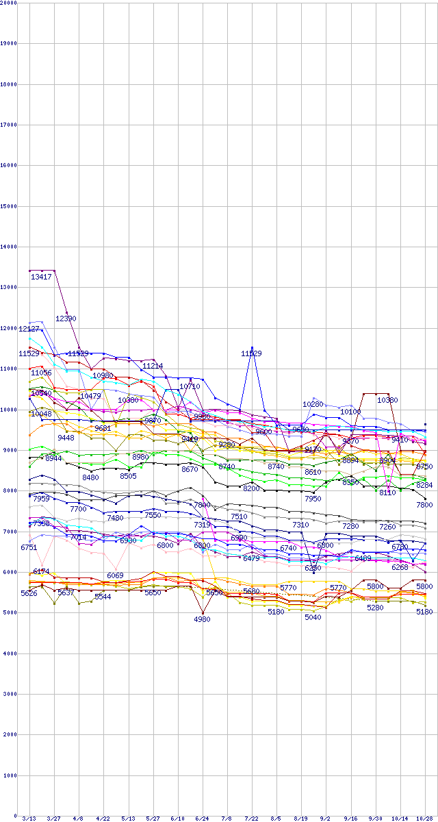 ※製品名をクリックすると個別のグラフを表示します ※点線部は販売店が確認できなかった、または調査データがないことを示します |