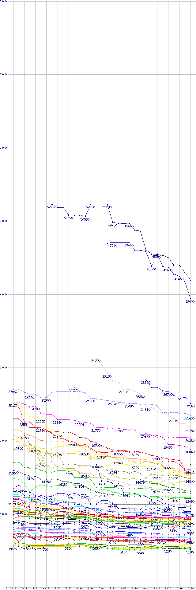 ※製品名をクリックすると個別のグラフを表示します ※点線部は販売店が確認できなかった、または調査データがないことを示します |