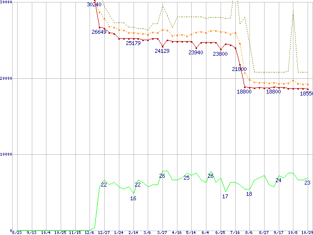 | Athlon 64 3000+(2GHz,L2 512KB) リテールパッケージの価格推移 |