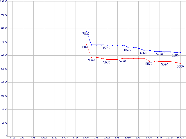 | [↑前グラフ]: | Deskstar 7K250 (7200rpm,UltraATA/100,FDB)の最安値推移 |
