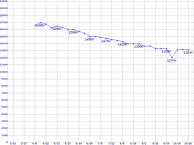 | [↑前グラフ]: | Barracuda 7200.7 SATA II (7200rpm,SerialATA II,8MB,80GB/Platter,FDB)の最安値推移 |