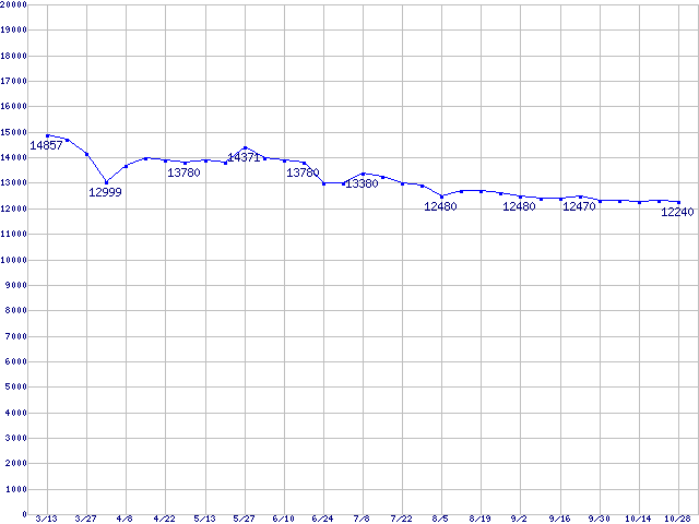 | [↑前グラフ]: | Barracuda 7200.7 (7200rpm,SerialATA/150,8MB,80GB/Platter,FDB)の最安値推移 |