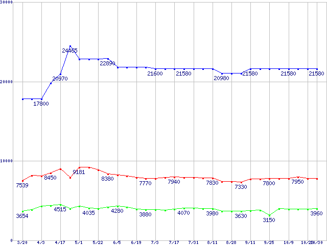 | ※製品名をクリックすると個別のグラフを表示します ※点線部は販売店が確認できなかった、または調査データがないことを示します | |