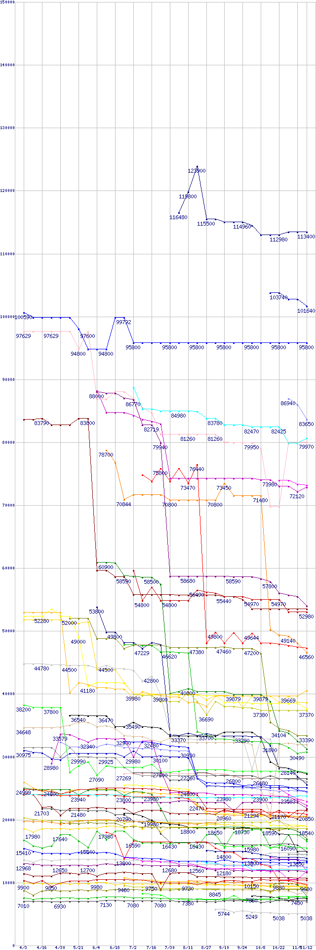 ※製品名をクリックすると個別のグラフを表示します ※点線部は販売店が確認できなかった、または調査データがないことを示します |