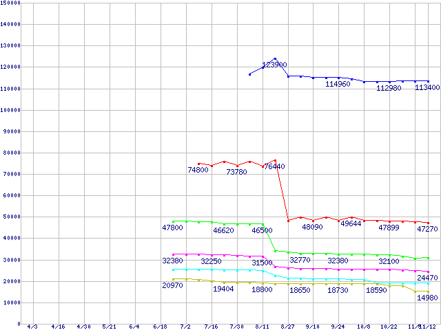 | ※製品名をクリックすると個別のグラフを表示します ※点線部は販売店が確認できなかった、または調査データがないことを示します | |