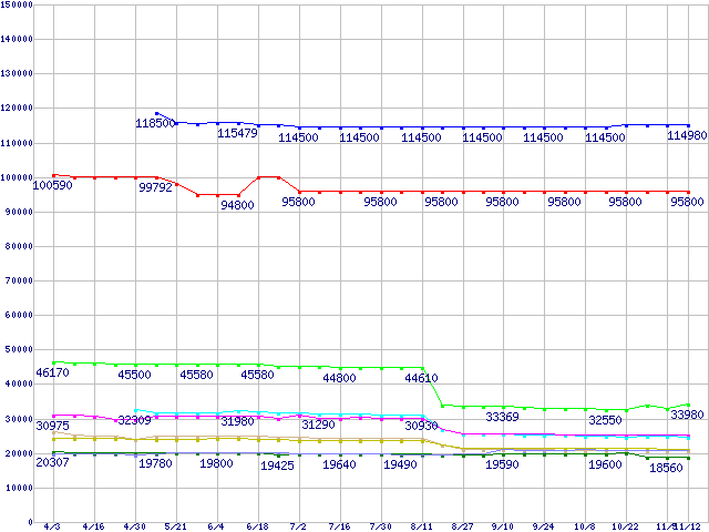 | [↑前グラフ]: | LGA 775・FSB 800MHzの最安値推移 |