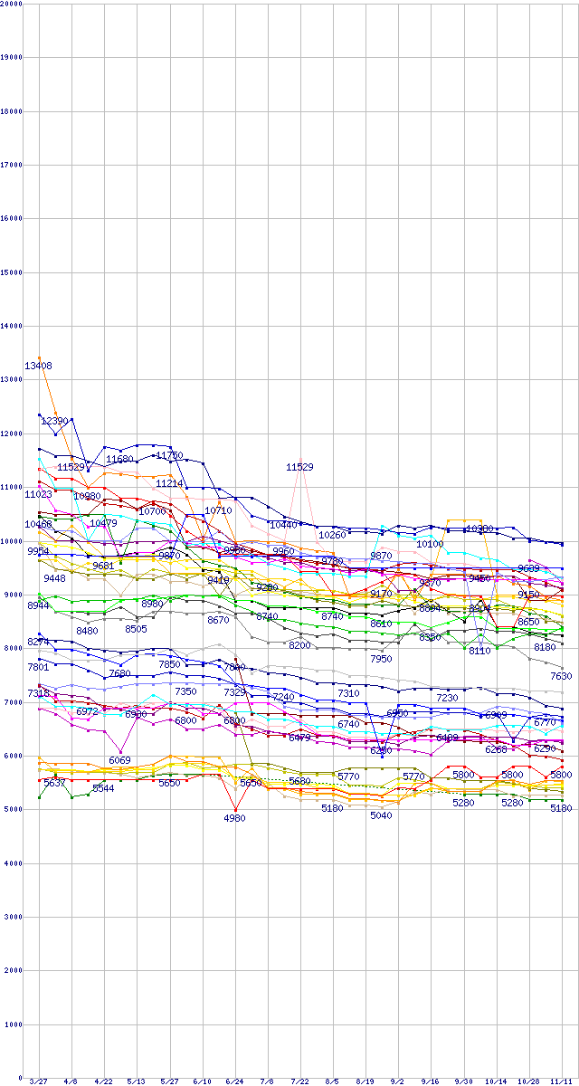 ※製品名をクリックすると個別のグラフを表示します ※点線部は販売店が確認できなかった、または調査データがないことを示します |