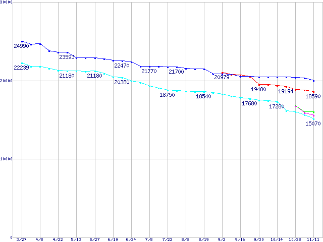 | [↓次グラフ]: | HDD主要製品(最安値2万円以上)の最安値推移 |