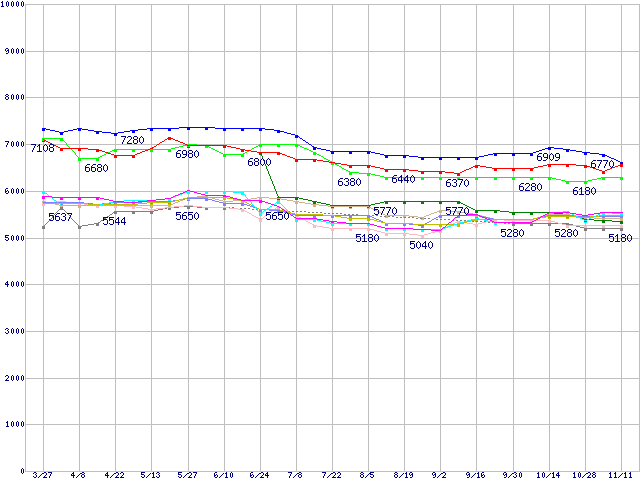 | [↑前グラフ]: | HDD 20GB~30GB未満の最安値推移 |
