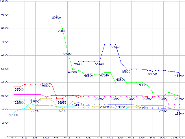 | [↑前グラフ]: | メモリ主要製品の最安値推移 |