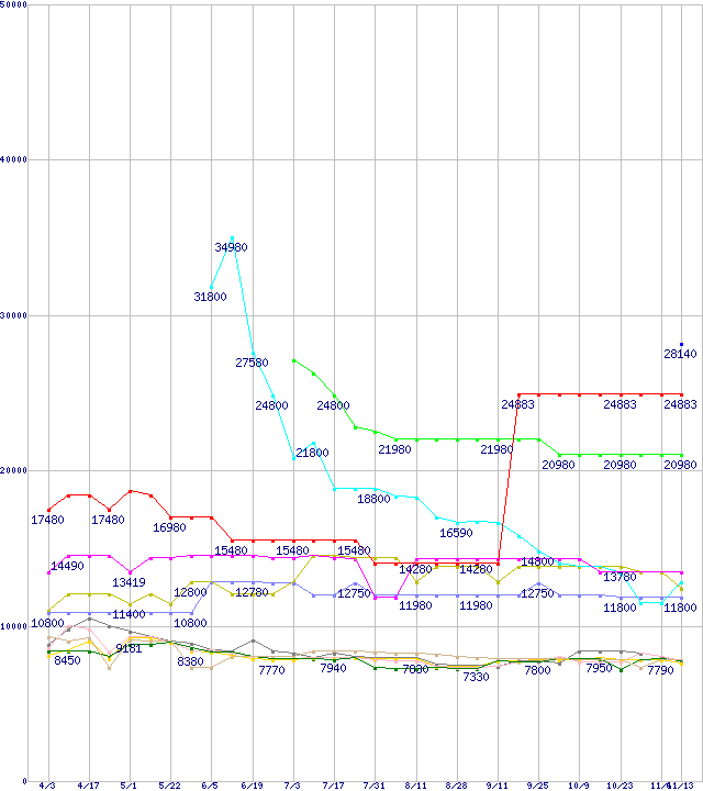 | [↑前グラフ]: | 1GBモジュールの最安値推移 |