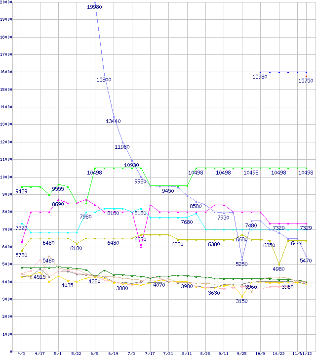 | [↑前グラフ]: | 512MBモジュールの最安値推移 |