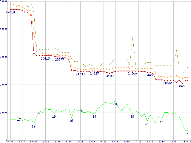 | ※このグラフは過去のデータも税率5%相当に調整した税込み相当額のグラフです。 税率変更や、総額表示方式導入(2004年4月)の影響は除いています。 | |||||||||||||||