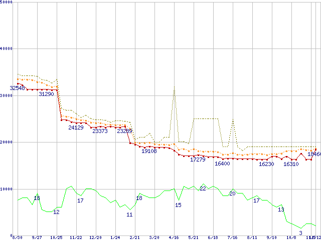 | Athlon XP 3000+ (2.17GHz) リテールパッケージの価格推移 |