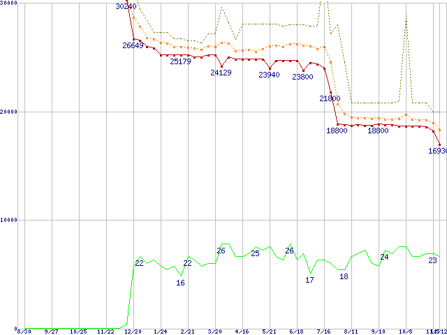 | Athlon 64 3000+(2GHz,L2 512KB) リテールパッケージの価格推移 |