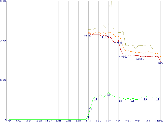 | Athlon 64 2800+(1.8GHz,L2 512KB) リテールパッケージの価格推移 |