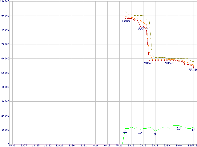 | Athlon 64 3700+(2.4GHz,L2 1MB) リテールパッケージの価格推移 |